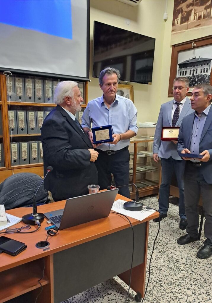 Η στιγμή της βράβευσης από τους τρεις προέδρους των συνδιοργανωτών Συλλόγων (από το Facebook pofile του βουλευτή Σ. Κελέτση)