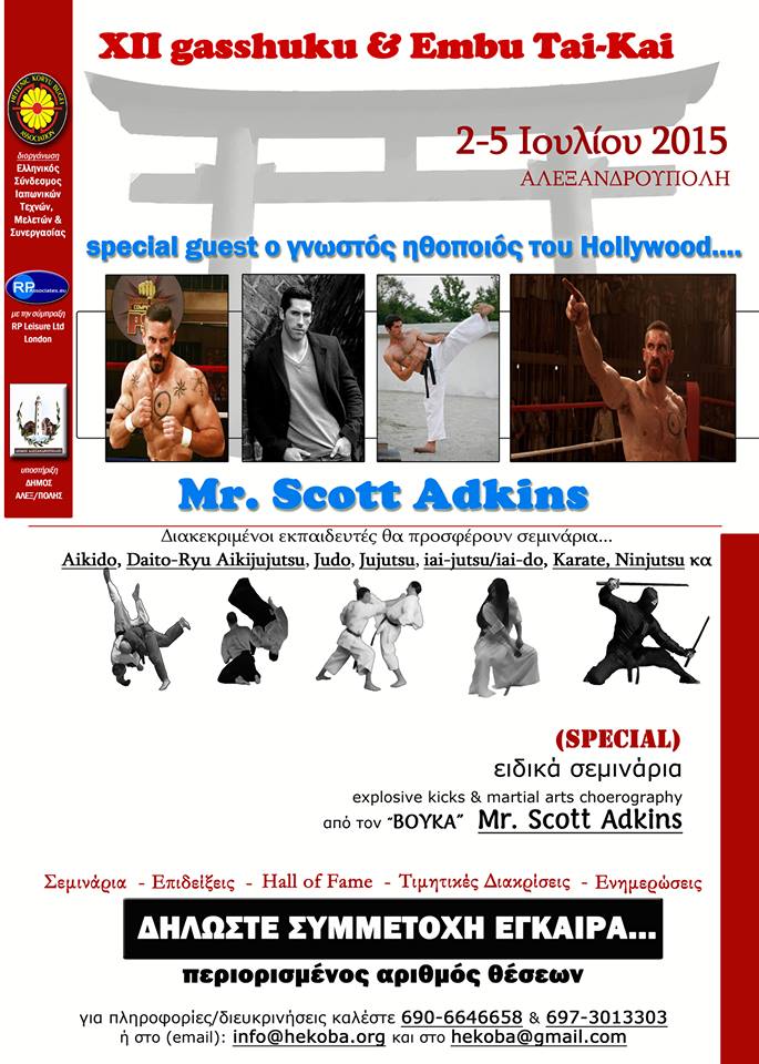 Ο Ελληνικός Σύνδεσμος Ιαπωνικών Πολεμικών Τεχνών ανακοινώνει τη διοργάνωση του 12ου ετήσιου τακτικού gasshuku & embu Tai-Kai το οποίο θα λάβει χώρα στην Αλεξανδρούπολη από 2 έως και 5 Ιουλίου 2015.