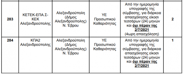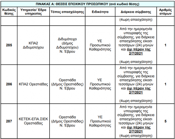 Συγκεκριμένα για τον νομό Έβρου προβλέπονται 10 συνολικά θέσεις: 3 για την Αλεξανδρούπολη, 1 για το Διδυμότειχο και 6 για την Ορεστιάδα ως εξής: