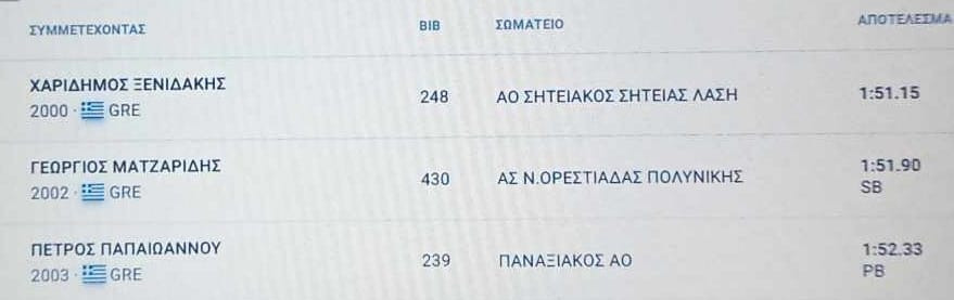 “Ακόμα δεν έχω καταλάβει γιατί κόλλησα στα 1500 και εγκατέλειψα, δεν ξέρω, κόλλησε το μυαλό μου, δεν μου έχει ξανασυμβεί, δεν ήταν σωματικό πρόβλημα“, εξήγησε σχετικά με την πρώτη μέρα των αγώνων και όσα συνέβησαν στα 1500μ. Όμως στα 800μ. “κυνηγάμε πάντα κάτι καλύτερο“, είπε, καθώς ήταν αναμενόμενοι αυτοί οι χρόνοι: “έχω σταθεροποιηθεί σε αυτό το επίπεδο, στο Πανελλήνιο είμαι πάντα στο βάθρο και μεταξύ 1ης ή 2ης θέσης“, δήλωσε. Συγκριτικά με το συναθλητή του Χάρη Ξενιδάκη σημείωσε: “Ο Χάρης είναι πολύ πιο γρήγορος από μένα, σε μικρές αποστάσεις είναι αρκετά πιο γρήγορος, οπότε στα τελευταία μέτρα ήμουν σίγουρος ότι θα βγει μπροστά“.