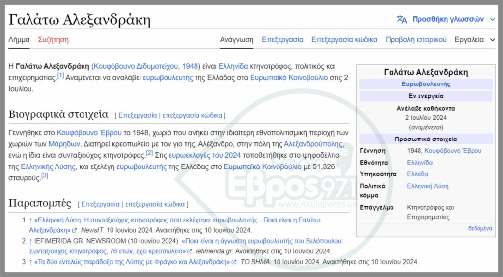 Η νεοεκλεγείσα Ευρωβουλευτής πάντως έχει γίνει ήδη λήμμα στην Wikipedia από σήμερα, καθώς αποτελεί μία εκ των 21 Ελλήνων και Ελληνίδων που θα εκπροσωπούν τη χώρα στην Ευρωπαϊκή Ένωση για τα επόμενα 5 χρόνια: