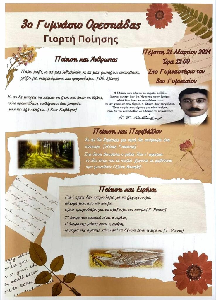 Όλα είναι Ποίηση στο 3ο Γυμνάσιο Ορεστιάδας∙ για τον Άνθρωπο, την Ειρήνη, το Περιβάλλον