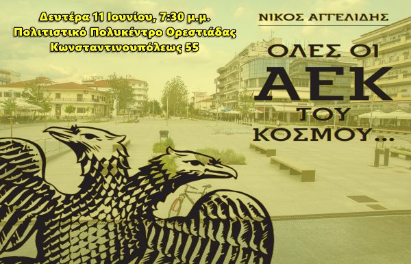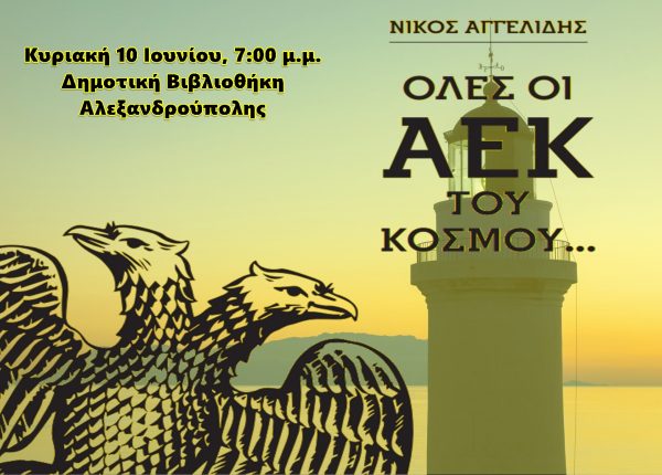 Στην Κομοτηνή, την Αλεξανδρούπολη και την Ορεστιάδα παρουσιάζεται επίσημα, το Σαββατοκύριακο που μας έρχεται και τη Δευτέρα, το βιβλίο ΟΛΕΣ ΟΙ ΑΕΚ ΤΟΥ ΚΟΣΜΟΥ, του δημοσιογράφου της ΕΡΤ, Νίκου Αγγελίδη.