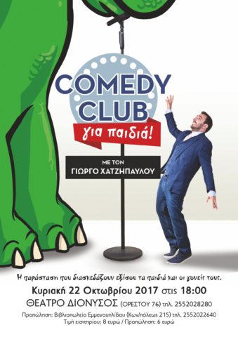 Το Comedy Club για παιδιά είναι μια παράσταση που οι γονείς διασκεδάζουν εξίσου με τα παιδιά και ξεκίνησε πέρυσι με πολύ μεγάλη επιτυχία σε Αθήνα και Θεσσαλονίκη.