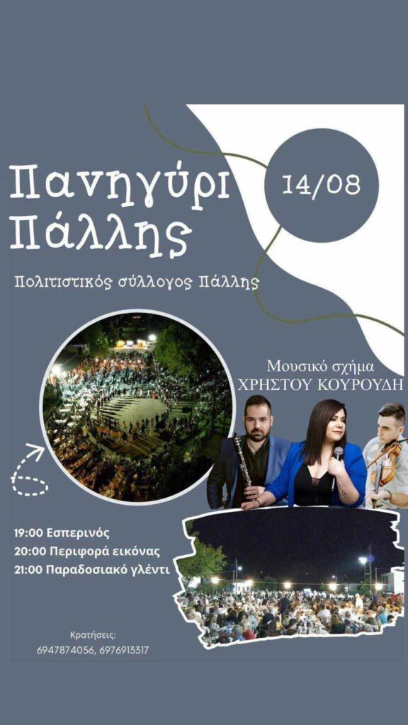 Ο Πολιτιστικός Σύλλογος Πάλλης διοργανώνει το Πανηγύρι Πάλλης, την Τετάρτη 14 Αυγούστου