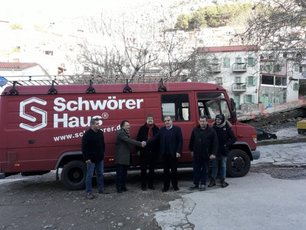 Από την πλευρά της Ελληνογερμανικής Συνέλευσης ο κος Κ. Σουμάχερ μετέφερε τους χαιρετισμούς των κυρίων J.Zeller & H. Dembek, οι οποίοι βρέθηκαν στη Σαμοθράκη στις αρχές του φετινού Σεπτέμβρη για επαφές με τον Δήμαρχο στα πλαίσια της συνεργασίας του με την Ελληνογερμανική Συνέλευση, για δεύτερη συνεχή χρονιά και επιβεβαίωσαν το ενδιαφέρον τους να συνδράμουν με τον τρόπο τους στον Δήμο Σαμοθράκης να ξεπεράσει λειτουργικά του προβλήματα. Σε αυτό το πλαίσιο κατάφεραν να εξασφαλίσουν την χορηγία ενός οχήματος από την εταιρία Schwörer Haus KG & Wijnen Venlo για την υπηρεσία ύδρευσης το οποίο και παραδίδουμε σήμερα.