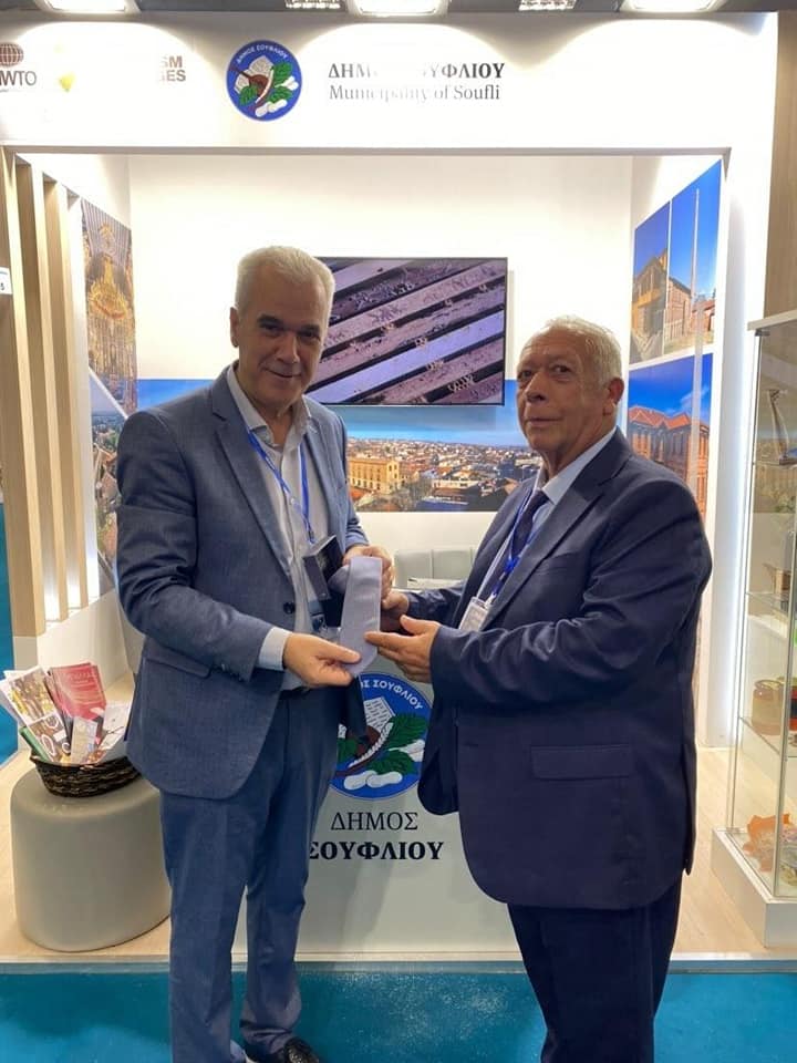 Τον Πρόεδρο της Ομοσπονδίας Επιχειρηματιών Τουρισμού και ιδιοκτητών τουριστικών γραφείων και λεωφορείων Ελλάδος, κύριο Απόστολο Εμμανουηλίδη συνάντησε χθες ο Δήμαρχος Σουφλίου εκ νέου, μετά την προχθεσινή εκτενή συζήτηση που προηγήθηκε, παρουσία και του Προέδρου του Συλλόγου Επαγγελματιών Βιοτεχνών και Εμπόρων Σουφλίου και περιχώρων ,στα πλαίσια της Διεθνούς Έκθεσης Τουρισμού PHILOXENIA 2022.