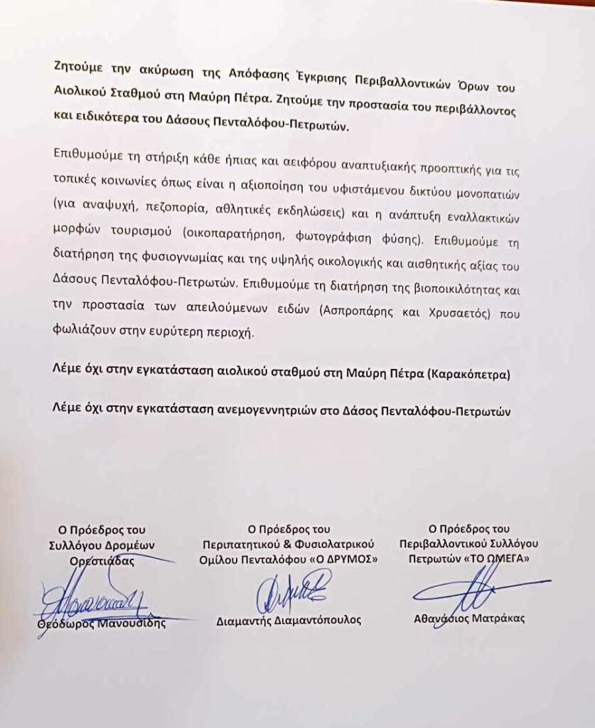 “Όχι στην εγκατάσταση ανεμογεννητριών”, η φωνή της τοπικής κοινωνίας από τα Πετρωτά