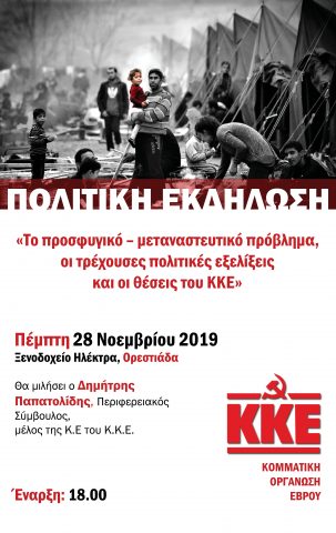 με θέμα: «Το προσφυγικό – μεταναστευτικό πρόβλημα, οι τρέχουσες πολιτικές εξελίξεις και οι θέσεις του ΚΚΕ»