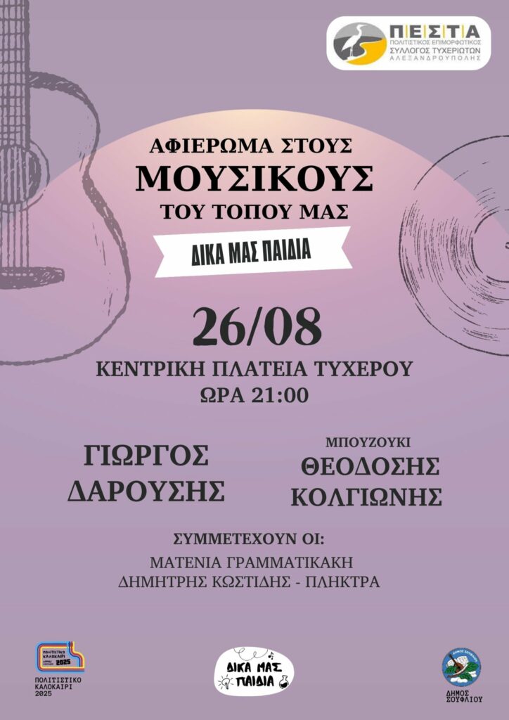 26/8 | “Δικά μας παιδιά” – Αφιέρωμα στους μουσικούς του τόπου μας