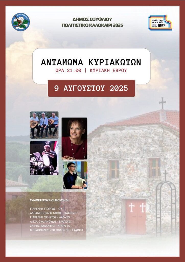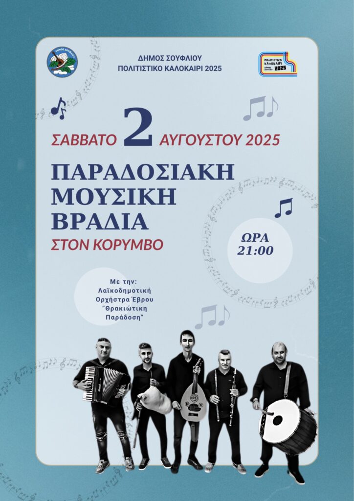 Ο Δήμος Σουφλίου ετοιμάζεται να υποδεχτεί τον Αύγουστο με ένα πλούσιο πρόγραμμα εκδηλώσεων, στο πλαίσιο του Πολιτιστικού Καλοκαιριού 2025.