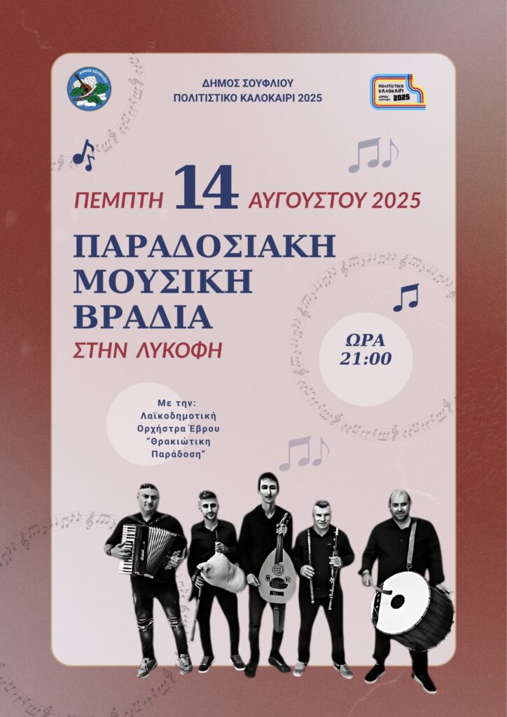 14/8 | Παραδοσιακή Μουσική Βραδιά
