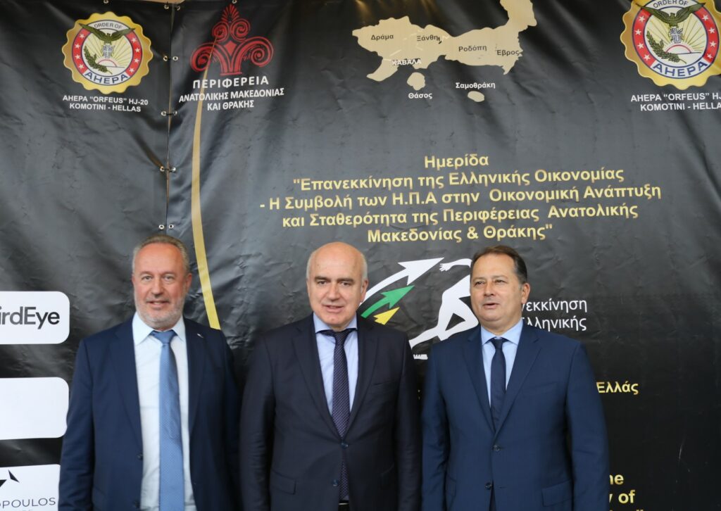 «Επανεκκίνηση της Ελληνικής Οικονομίας – Η Συμβολή των ΗΠΑ στην Οικονομική Ανάπτυξη και Σταθερότητα της Περιφέρειας Ανατολικής Μακεδονίας και Θράκης» ήταν ο τίτλος του Συνεδρίου που διοργανώθηκε από τη Διεθνή Πρωτοβουλία «Επανεκκίνηση της Ελληνικής Οικονομίας» και τους ΑΗΕΡΑ «Ορφέας» HJ20 Κομοτηνή, με τη στήριξη της Περιφέρειας Ανατολικής Μακεδονίας και Θράκης, το Σάββατο 5 Νοεμβρίου στο Πολιτιστικό και Συνεδριακό Κέντρο – Μέγαρο Μουσικής Κομοτηνής.