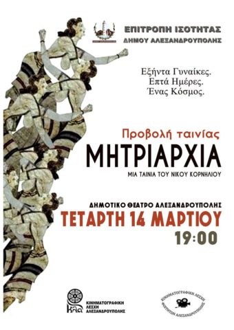 Προβολής της ταινίας “Μητριαρχία” στα πλαίσια των εκδηλώσεων για την Παγκόσμια Ημέρα της Γυναίκας τον μήνα Μάρτιο από την Επιτροπή Ισότητας Φύλων του Δήμου Αλεξανδρούπολης