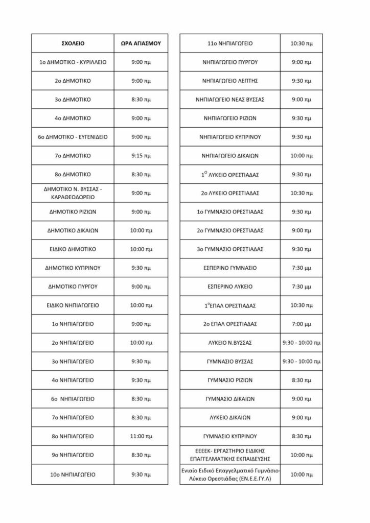 Το πρόγραμμα αγιασμών στις σχολικές μονάδες του Δήμου Ορεστιάδας