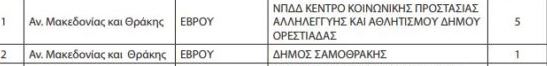 Πιο συγκεκριμένα οι πέντε θα είναι στον Δήμο της Ορεστιάδας και ένας στο Δήμο της Σαμοθράκης.
