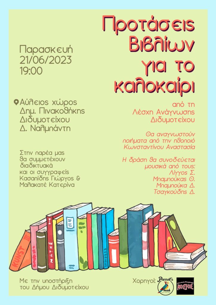 Η Λέσχη Ανάγνωσης Διδυμοτείχου διοργανώνει για δεύτερη συνεχόμενη χρονιά τη δράση “Προτάσεις βιβλίων για το καλοκαίρι”: