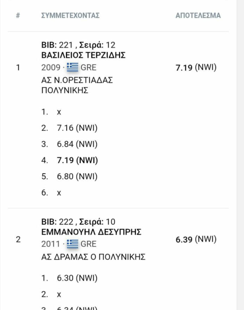 Πρωταθλητής Ελλάδας Κ16 – Άλμα εις μήκος – 7.19