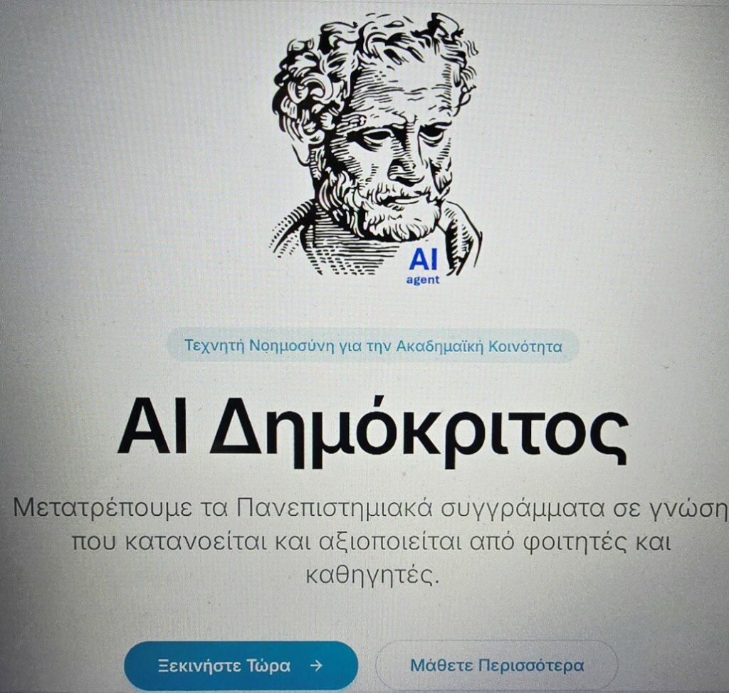 Η εφαρμογή AI Δημόκριτος που αναπτύχθηκε από τον Καθηγητή κ. Τσινάκο στο AETMA Lab του Τμήματος Πληροφορικής του ΔΠΘ, λειτουργεί ως έξυπνος ακαδημαϊκός βοηθός, αξιοποιώντας το εκπαιδευτικό υλικό του Πανεπιστημίου και υποστηρίζοντας ουσιαστικά τη διδασκαλία και τη μάθηση.