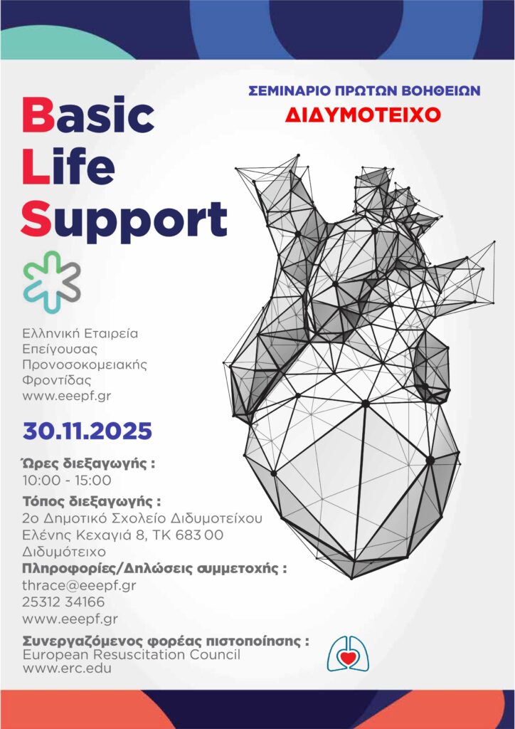 Η Ελληνική Εταιρεία Επείγουσας Προνοσοκομειακής Φροντίδας (Ε.Ε.Ε.Π.Φ.) διοργανώνει στο Διδυμότειχο, την Κυριακή 30 Νοεμβρίου 2025, ένα ολοκληρωμένο και πιστοποιημένο σεμινάριο Basic Life Support (BLS) – μια εκπαίδευση ζωτικής σημασίας που απευθύνεται σε όλους τους πολίτες άνω των 12 ετών.
