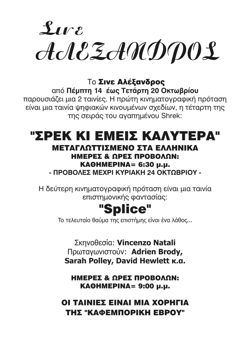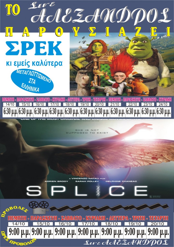 Shrek Και Splice οι δύο ταινίες που παρουσιάζει αυτή την εβδομάδα το Σινέ Αλέξανδρος