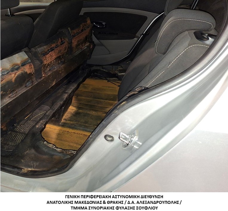 Στη δεύτερη περίπτωση, το βράδυο δεύτεροςδιακινητής οδηγώντας Ι.Χ.Ε. όχημα, μετέβη στο Συνοριακό Σημείο Διέλευσης Κήπων προκειμένου να πραγματοποιήσει είσοδο στη Χώρα, όπου κατά τον ενδελεχή έλεγχο που πραγματοποίησαν αστυνομικοί του Τμήματος Διαβατηριακού Ελέγχου Κήπων και του Τμήματος Συνοριακής Φύλαξης Σουφλίου της Διεύθυνσης Αστυνομίας Αλεξανδρούπολης, με τη συνδρομή τελωνειακών υπαλλήλων, διαπίστωσαν ότι βρίσκονταν επιμελώς κρυμμένοι σε ειδικά διαμορφωμένη κρύπτη του οχήματος δύο -2- μη νόμιμοι μετανάστες, τους οποίους ο δράστης μετέφερε παράνομα στο εσωτερικό της Χώρας.