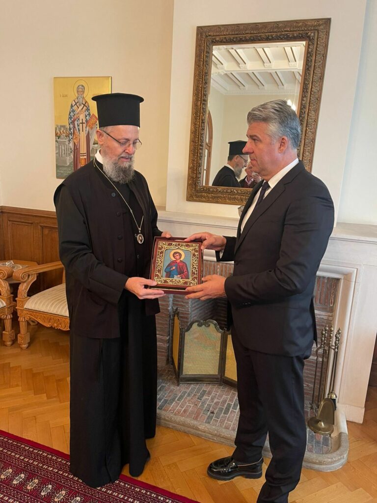 Τέλος, στο περιθώριο των επαφών στο πλαίσιο της 23ης Ευρωπαϊκής Εβδομάδας Περιφερειών και Πόλεων, ο Περιφερειάρχης κος Τοψίδης, έγινε δεκτός από τον Επίσκοπο Τανάγρας κ. Απόστολο, διευθυντή του Γραφείου της Αντιπροσωπείας της Εκκλησίας της Ελλάδος στις Βρυξέλλες. Κατά τη διάρκεια της συνάντησης συζητήθηκαν θέματα που αφορούν το γραφείο της ΠΑΜΘ στις Βρυξέλλες, τα έργα που υλοποιούνται στην Περιφέρεια, καθώς και η άριστη συνεργασία του κ. Περιφερειάρχη με τους Μητροπολίτες της Ανατολικής Μακεδονίας και Θράκης.