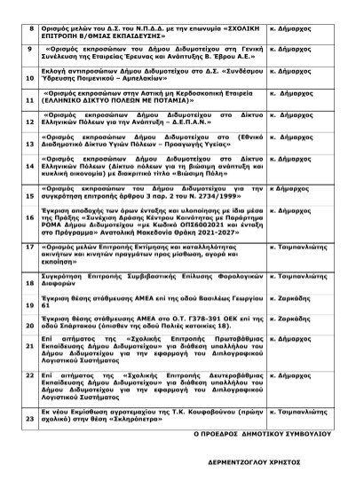 Η τακτική συνεδρίαση θα πραγματοποιηθεί δια ζώσης στο Δημοτικό Κατάστημα στην αίθουσα του Δημοτικού Συμβουλίου με 23 θέματα της ημερήσιας διάταξης που έχουν ανάγκη επίλυσης.