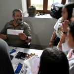- Ο υπάλληλος του Δασαρχείου Σαπών αστειεύεται με τους μαθητές ενώ εκείνοι τον κοιτούν με αγωνία για να τους παραδώσει τον φάκελο. Photo: G.Azoridis/WWF
