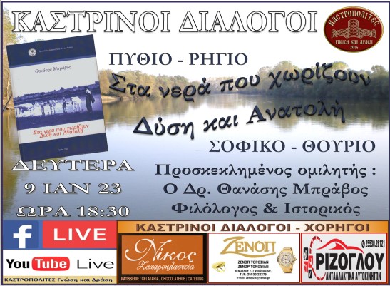 «Στα νερά που χωρίζουν Δύση και Ανατολή : Πύθιο, Ρήγιο, Σοφικό και Θούριο», με προσκεκλημένο ομιλητή τον Δρ. Θανάση Μπράβο Φιλόλογο – Ιστορικό.
