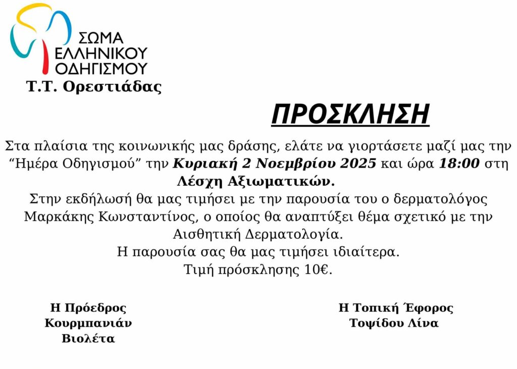 Η εκδήλωση θα πραγματοποιηθεί την Κυριακή 2 Νοεμβρίου 2025, στις 18:00, στη Λέσχη Αξιωματικών Ορεστιάδας.