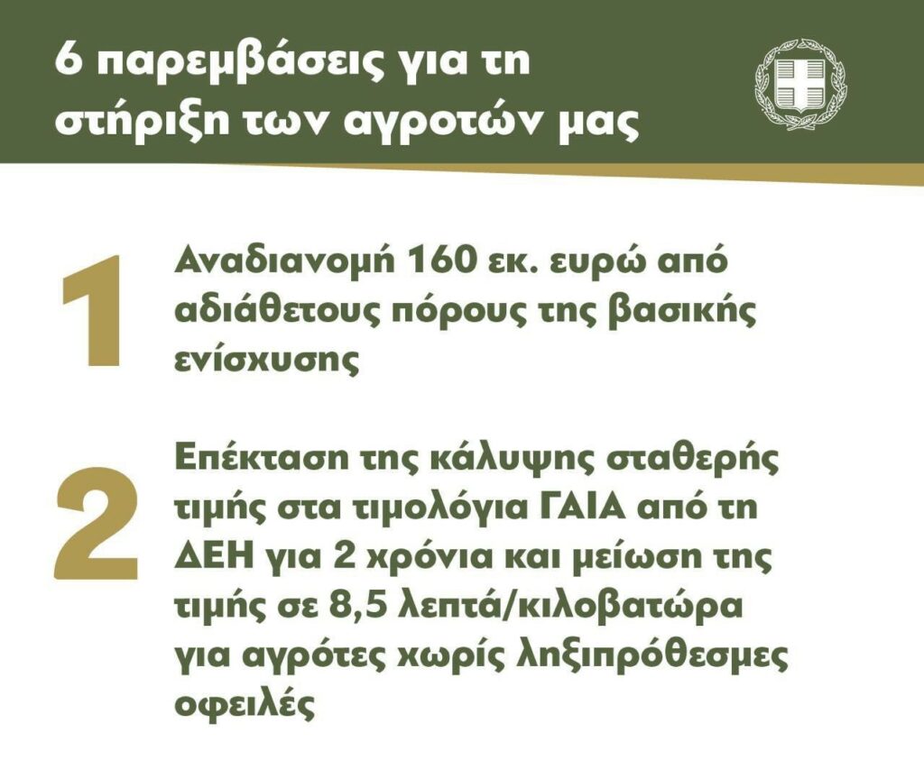 “Σήμερα, μαζί με τον Αντιπρόεδρο της Κυβέρνησης Κωστή Χατζηδάκη, τον Υπουργό Ψηφιακής Διακυβέρνησης Δημήτρη Παπαστεργίου και τον Υφυπουργό Εθνικής Οικονομίας και Οικονομικών Θάνο Πετραλιά, παρουσιάσαμε μια συγκεκριμένη, κοστολογημένη και εφαρμόσιμη δέσμη μέτρων για τη στήριξη του πρωτογενούς τομέα.