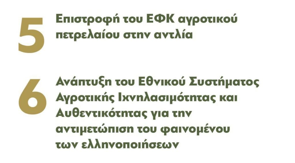 • Επιστροφή ΕΦΚ αγροτικού πετρελαίου στην αντλία, με ψηφιακό έλεγχο και διαφάνεια.
