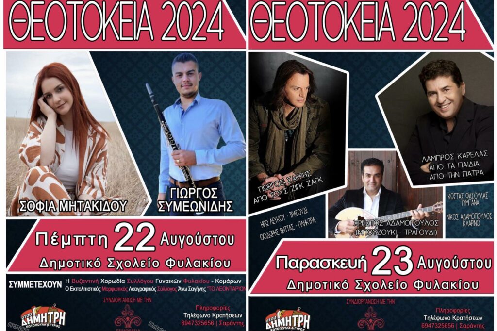 Την Πέμπτη 22 και την Παρασκευή 23 Αυγούστου έρχονται τα “Θεοτόκεια 2024”, ένα διήμερο πολιτιστικών εκδηλώσεων στο Φυλάκιο