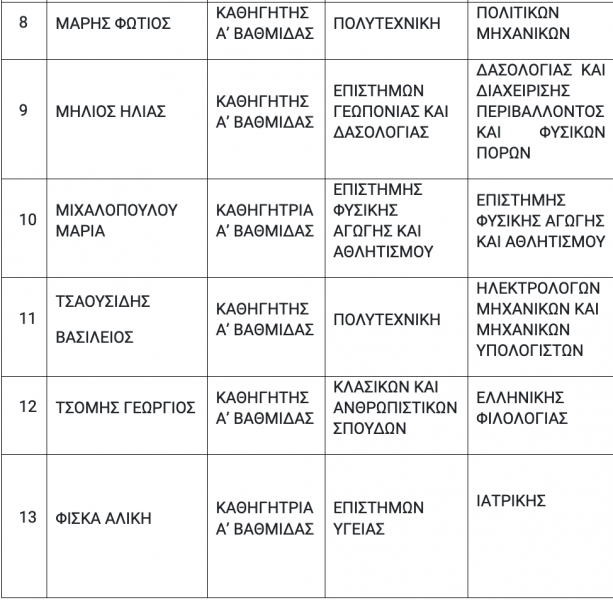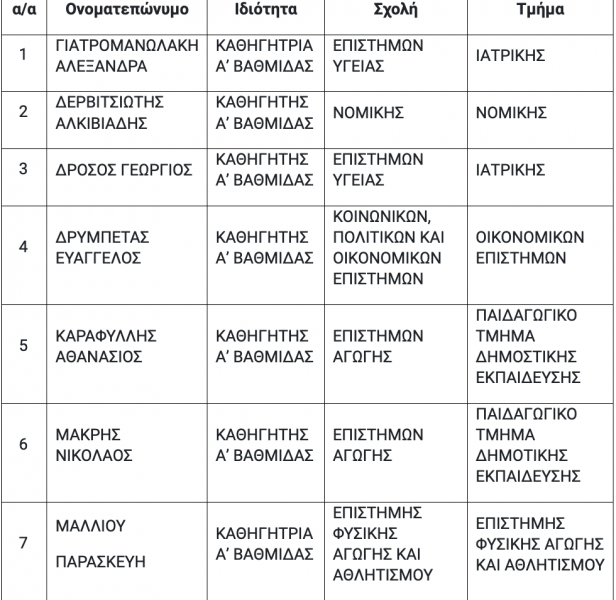 Ειδικότερα οι υποψήφιοι κατά αλφαβητική σειρά έχουν ως εξής: