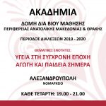 Η ΑΚΑΔΗΜΙΑ – Δομή Δια Βίου Μάθησης της Περιφέρειας Ανατολικής Μακεδονίας και Θράκης ξεκινά για πέμπτη χρονιά, με πρώτη διάλεξη την Τετάρτη 27 Νοεμβρίου 2019.