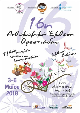Η Δημοτική Κοινωφελής Επιχείρηση Πολιτιστικής Ανάπτυξης Ορεστιάδας σε συνεργασία με την ΕΕΒΟΠ και υπό την αιγίδα του Επιμελητηρίου Έβρου διοργανώνουν για άλλη μία χρονιά από την Πέμπτη 3 έως την Κυριακή 6 Μαΐου 2018 στο Άλσος Αδριανουπόλεως, την 16η Ανθοκομική Έκθεση Ορεστιάδας!