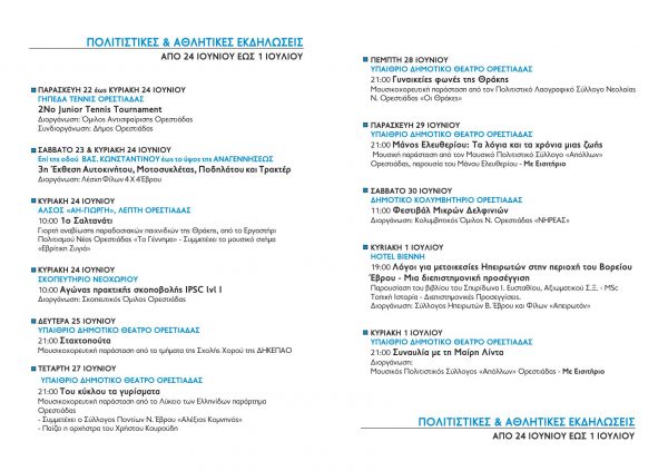 Το πρόγραμμα για τα “ΟΡΕΣΤΕΙΑ 2018”