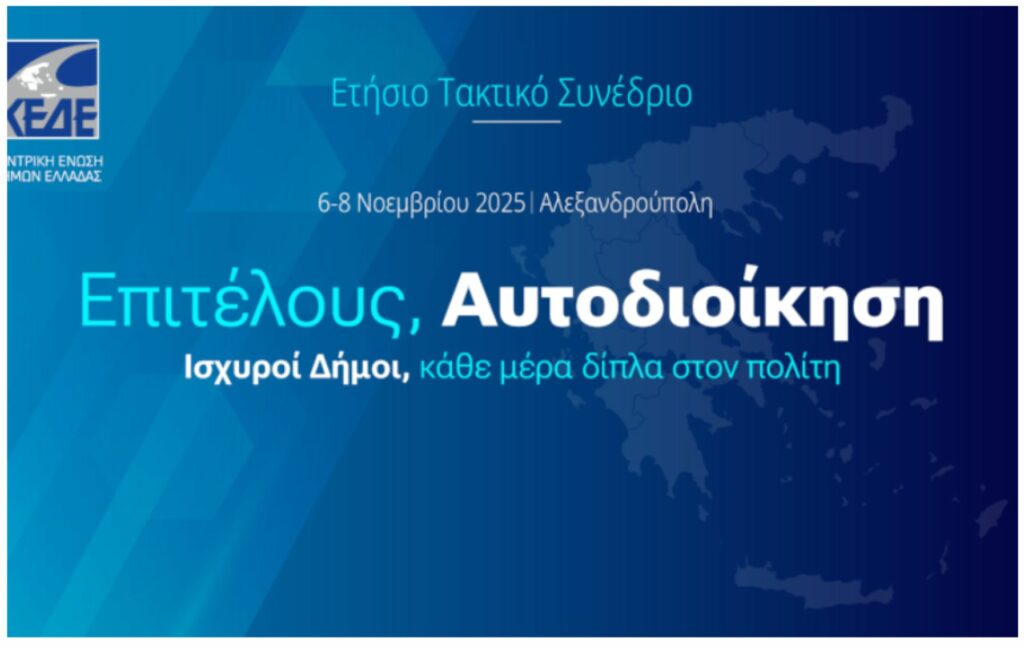 Η Κεντρική Ένωση Δήμων Ελλάδας (Κ.Ε.Δ.Ε.) διοργανώνει το Ετήσιο Τακτικό Συνέδριό της από σήμερα Πέμπτη (6/11) έως το Σάββατο (8/11) στην Αλεξανδρούπολη, με τη συμμετοχή δημάρχων, αυτοδιοικητικών στελεχών, υπουργών, υφυπουργών, εκπροσώπων της κυβέρνησης, της αντιπολίτευσης και θεσμικών φορέων.