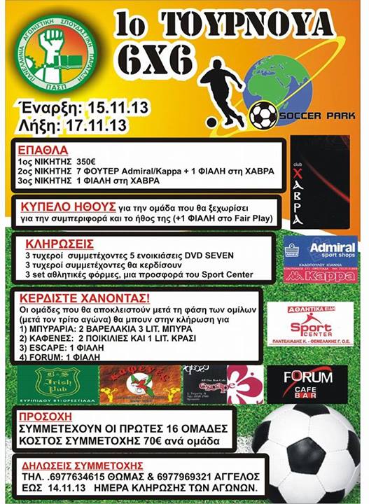 Τουρνούα 6χ6 διοργανώνει η ΠΑΣΠ Ορεστιάδας στο Soccer Park από 15/11/13 μέχρι 17/11/13