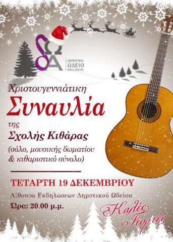 - Τετάρτη 19 Δεκεμβρίου 2018 και ώρα 8:00 μ.μ. συναυλία της Σχολής Κιθάρας με την εμφάνιση του νέου κιθαριστικού συνόλου.