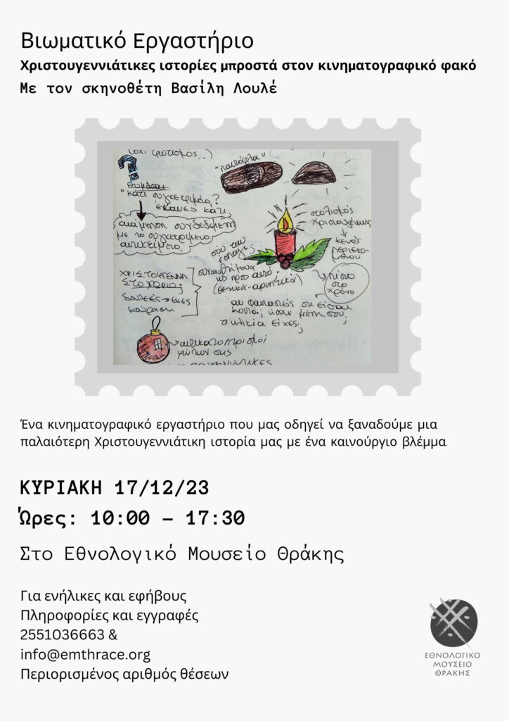 Χριστουγεννιάτικο κινηματογραφικό εργαστήρι με τον Βασίλη Λουλέ την Κυριακή 17 Δεκεμβρίου 2023 στο Εθνολογικό Μουσείο Θράκης