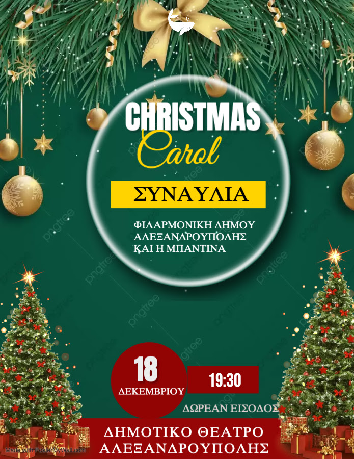 Η Φιλαρμονική του Δήμου Αλεξανδρούπολης συμμετέχει στις Χριστουγεννιάτικες εκδηλώσεις της πόλης μας και σας προσκαλεί στη συναυλία της με χριστουγεννιάτικες μελωδίες την Κυριακή 18 Δεκεμβρίου 19:30 στο Δημοτικό Θέατρο.