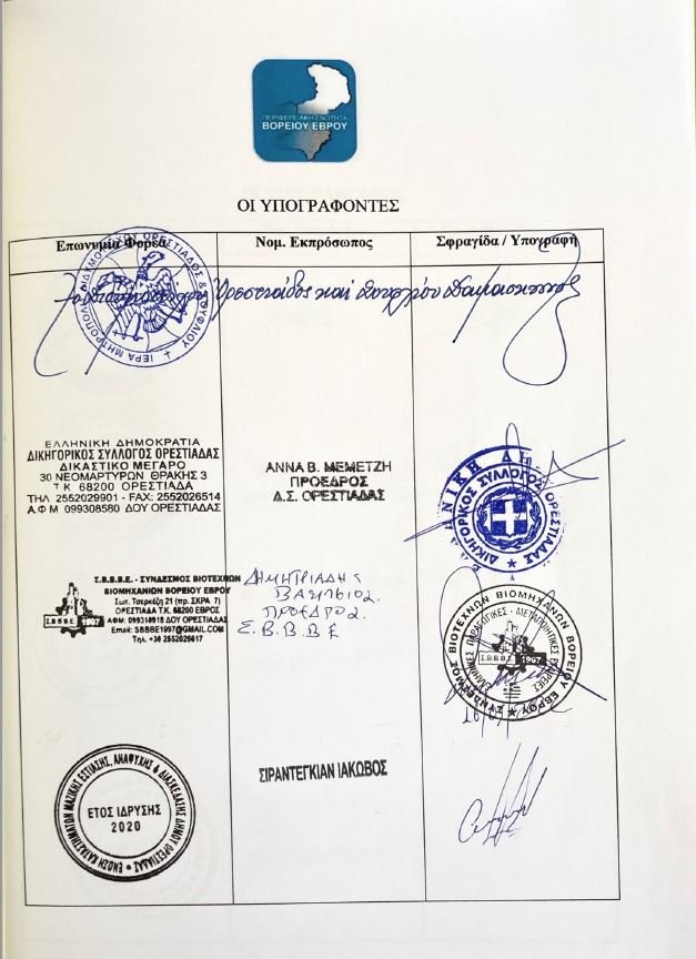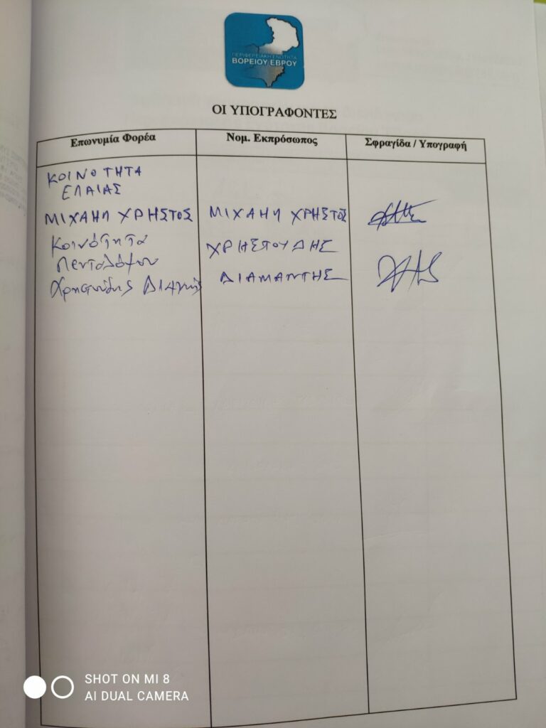 Εκεί, οι Πρόεδροι από την Ελιά, το Θεραπειό, τη Μηλιά, τον Πεντάλοφο, τα Πετρωτά, την Πλάτη, το Σπήλαιο και το Φυλάκιο, εκτός από τη θεσμική υπογραφή τους, ανέλαβαν να ενημερώσουν τους κατοίκους του κάθε χωριού ξεχωριστά, προκειμένου να συλλεχθούν υπογραφές από όλους τους πολίτες του Βορείου Έβρου που συμφωνούν πως η συγκεκριμένη πρωτοβουλία είναι μια – αν όχι η μοναδική – συλλογική προσπάθεια για να δοθούν κίνητρα που θα μπορέσουν να βάλουν φρένο στην απομόνωση και τη συνεχιζόμενη ερήμωση των τελευταίων χρόνων.