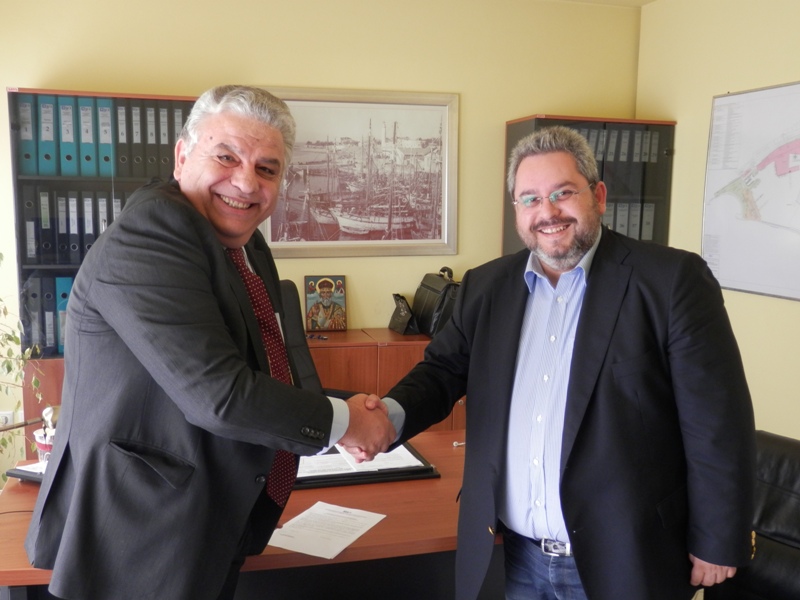 Πραγματοποιήθηκε σήμερα, Τρίτη 3 Δεκεμβρίου, στα γραφεία του Οργανισμού Λιμένος Αλεξανδρούπολης, η υπογραφή Πρωτοκόλλου Παράδοσης – Παραλαβής τμήματος αποθήκης στον εμπορικό λιμένα Αλεξανδρούπολης, σε εφαρμογή της υπ’ αριθ. 111/14/07-11-2013 Απόφασης Δ.Σ. της Ο.Λ.Α. Α.Ε., μεταξύ του Πρόεδρου του Οργανισμού Λιμένος Αλεξανδρούπολης κου Σταύρου Σταυράκογλου και του Διευθυντή Θεσσαλονίκης της εταιρείας ΚΟΣΚΟ Ναυτιλιακή – Πρακτορειακή ΕΛΛΑΣ Α.Ε. (COSCO SHIPPING AGENCY GREECE S.A.) κου Γεώργιου Κορνιλάκη.