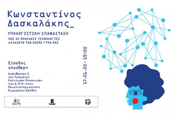 Την Παρασκευή 17 Ιανουαρίου και ώρα 19:00 μ.μ. το Δημοκρίτειο Πανεπιστήμιο Θράκης έχει τη χαρά να φιλοξενεί τον διεθνούς φήμης Έλληνα Καθηγητή του Μ.Ι.Τ. κ. Κωνσταντίνο Δασκαλάκη, ο οποίος θα δώσει ομιλία με θέμα “Υπολογιστική επανάσταση: Πώς οι ψηφιακές τεχνολογίες αλλάζουν τον κόσμο γύρω μας“, στο Αμφιθέατρο 1 του Τμήματος Πολιτικών Μηχανικών στην πανεπιστημιούπολη Κιμμερίων Ξάνθης.